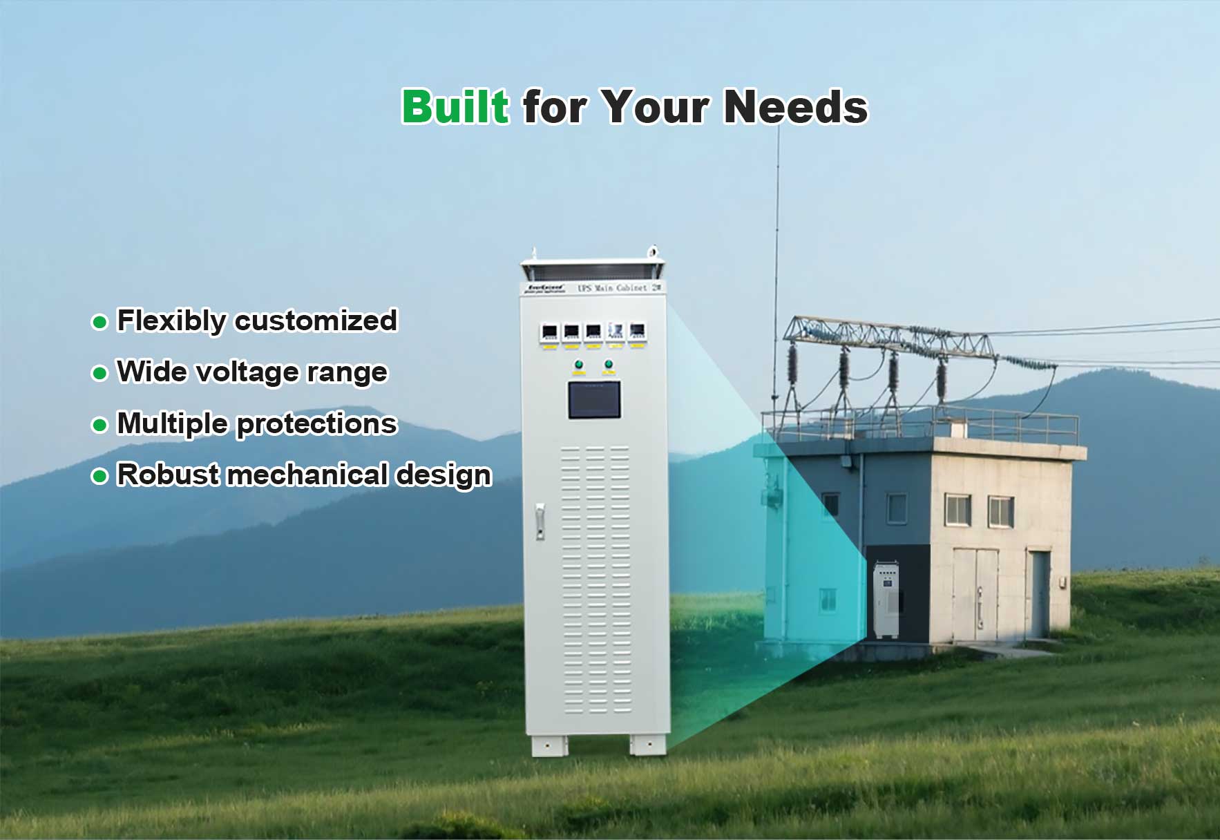 Les systèmes d'alimentation sans coupure (UPS) industriels peuvent être personnalisés en fonction de l'environnement du client, notamment en ce qui concerne la tension d'entrée et de sortie, la phase, la fréquence et la tension de la batterie. courant de charge et le niveau IP de l'armoire, etc. |