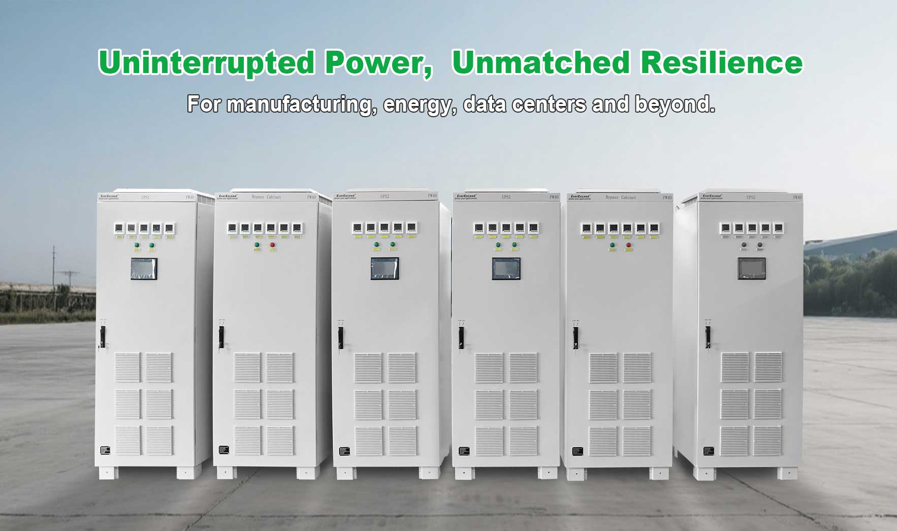 Les systèmes d'alimentation sans coupure (UPS) industriels EverExceed sont largement utilisés dans différentes industries telles que la production, la distribution et le transport d'énergie, la fabrication, les transports, l'exploitation minière, le raffinage, les usines pétrochimiques, le pétrole et le gaz, les hôpitaux et les aéroports, avec différentes applications telles que le contrôle des turbines à gaz, le déclenchement des appareillages de commutation, la signalisation, les alarmes, l'éclairage de secours, les systèmes de contrôle distribués (DCS), etc.