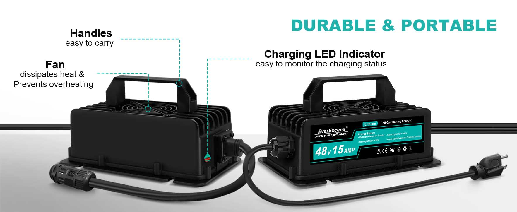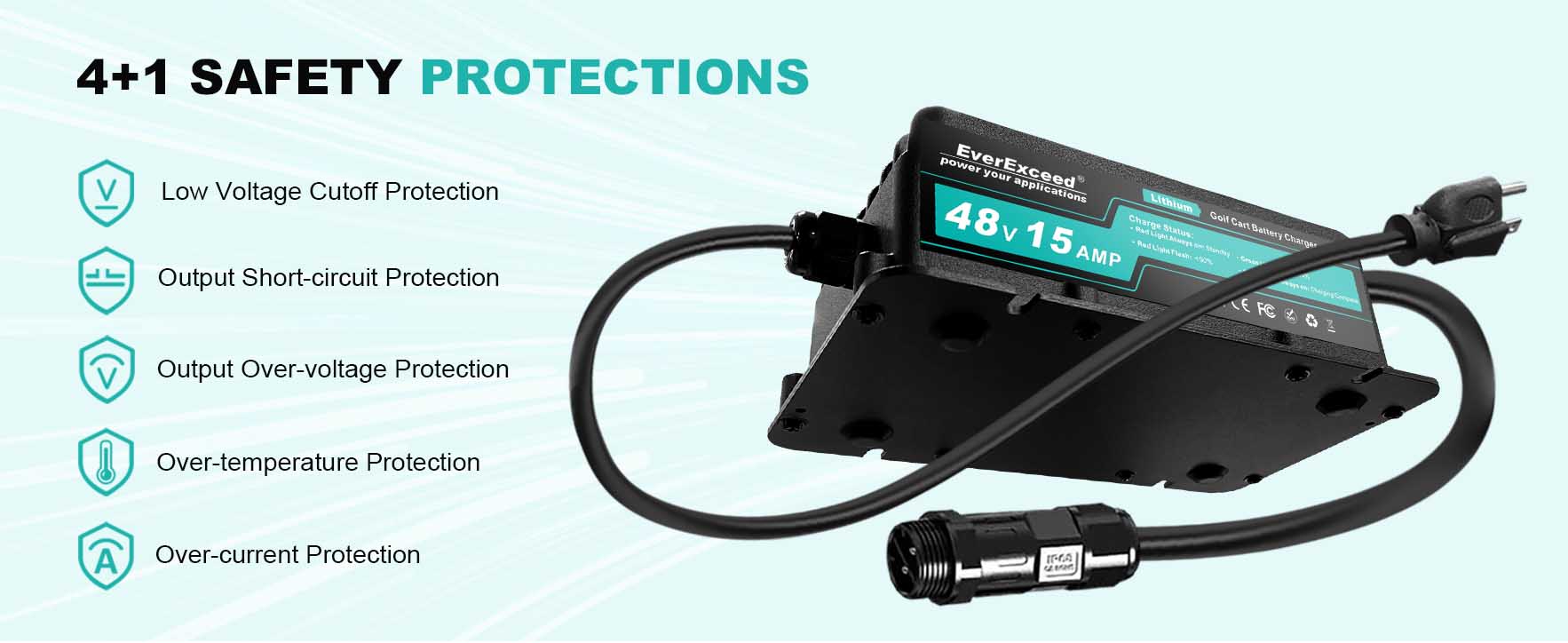 Chargeur de batterie au lithium EverExceed conçu pour voiturette de golf