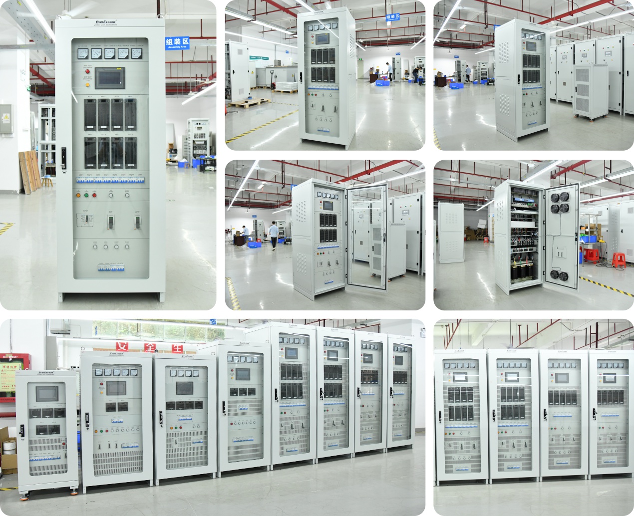 Conception intégrée configurée avec différents modules (surveillance, redresseur, inspection de la batterie, surveillance de l'interrupteur et de l'isolation, module abaisseur, etc.). |