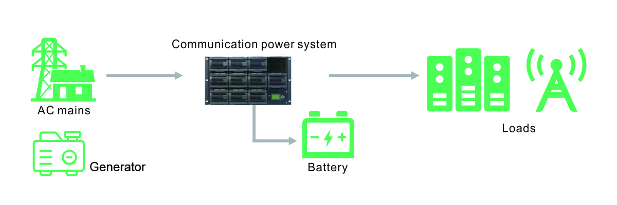 Largement utilisé dans les secteurs des communications et de l'industrie, ce système de gestion de l'alimentation convertit le courant alternatif en courant continu pour alimenter la charge CC, se connecte au système d'alimentation pour charger la batterie et surveille son état. Trois ports pour modules redresseurs remplaçables à chaud permettent de constituer un système redondant N+1, assurant ainsi la tolérance aux pannes de la charge. Afin de s'adapter à différents systèmes d'alimentation externes, le système de surveillance est doté de 45 options d'alarme. L'écran de surveillance affiche les informations d'alarme en temps réel, permet de consulter l'historique des alarmes et prend en charge le contrôle à distance via RS485/SNMP.